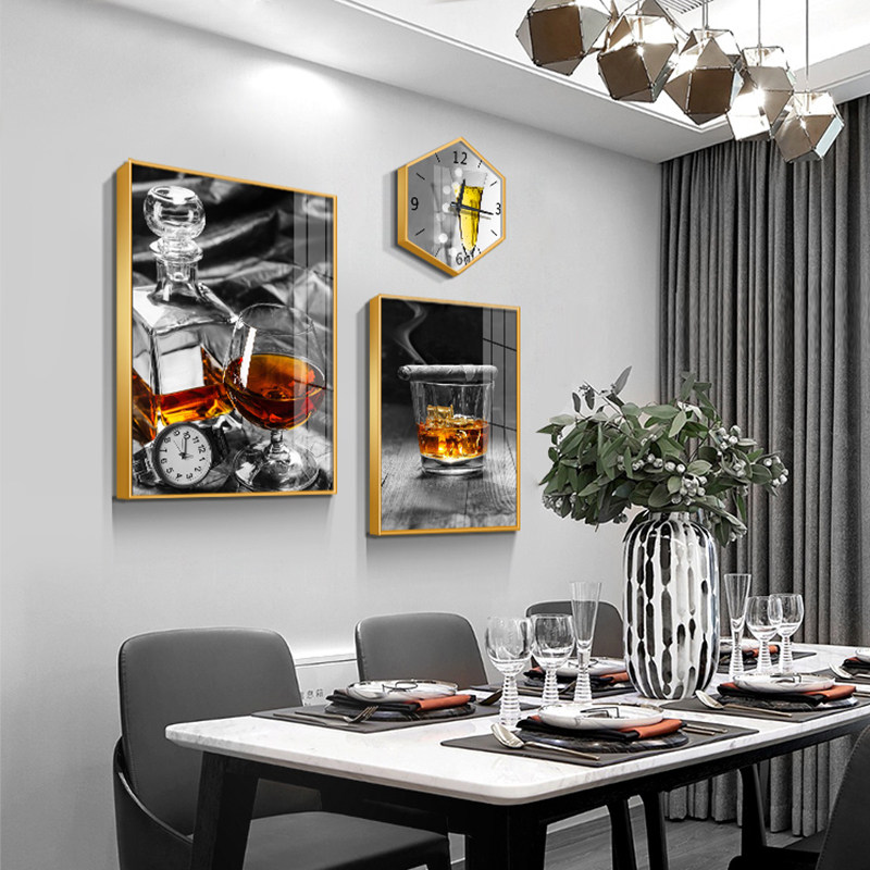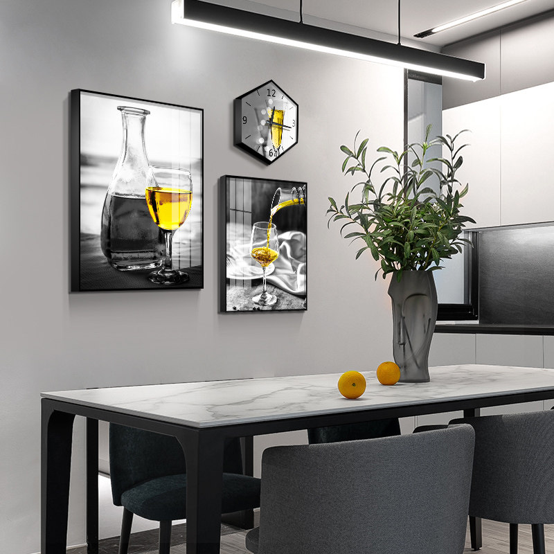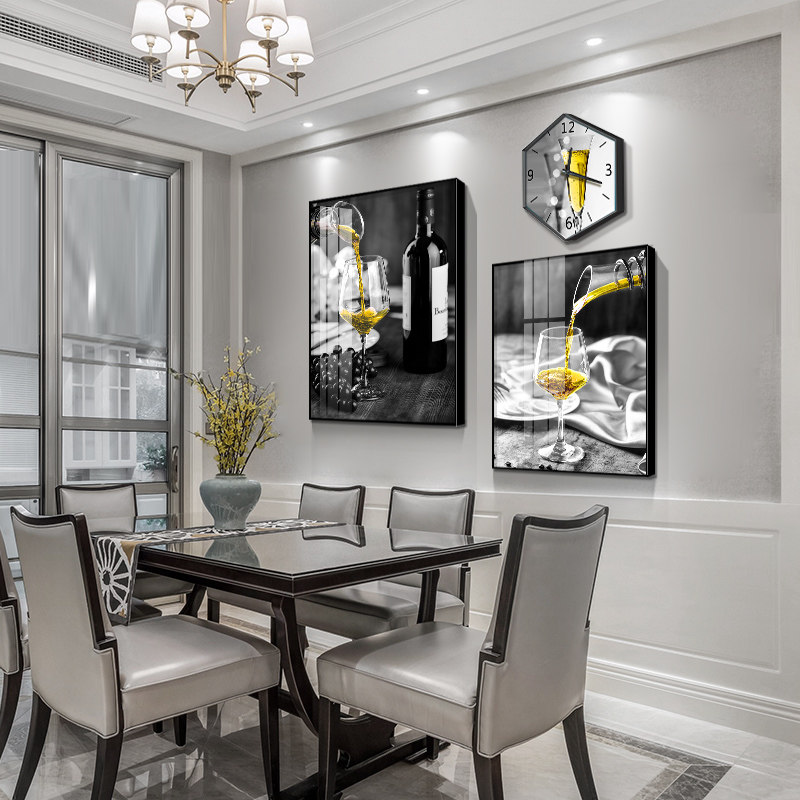 Dining room hanging painting three-piece clock painting triptych wall clock Living room decorative painting Modern simple dining room fresco light luxury
