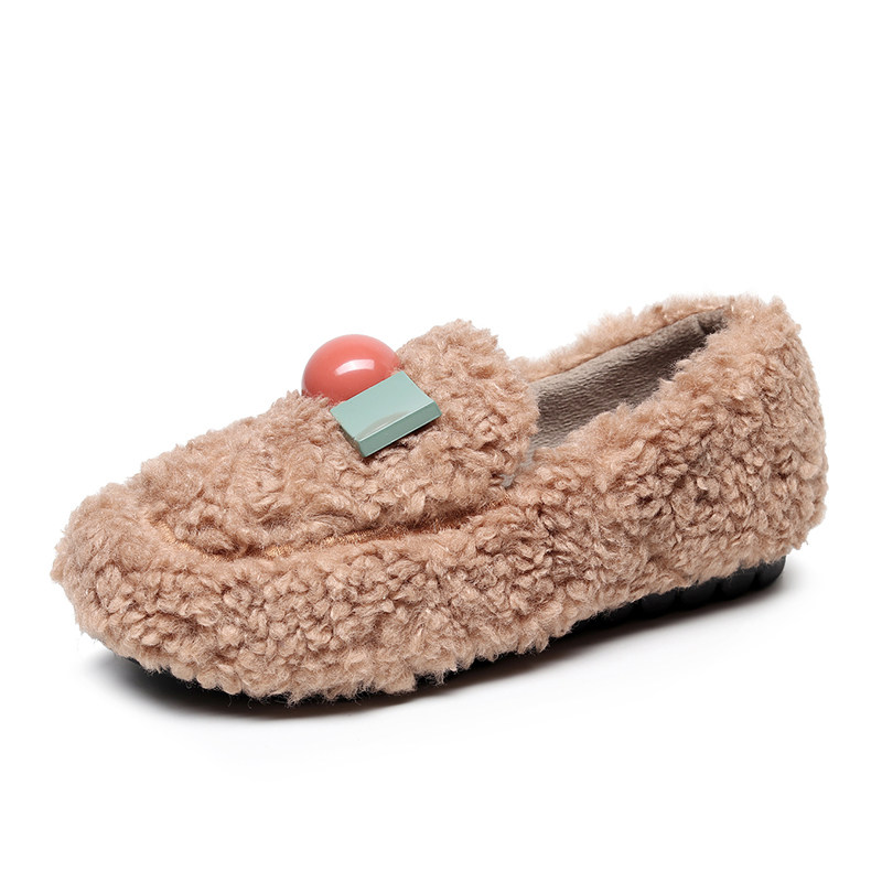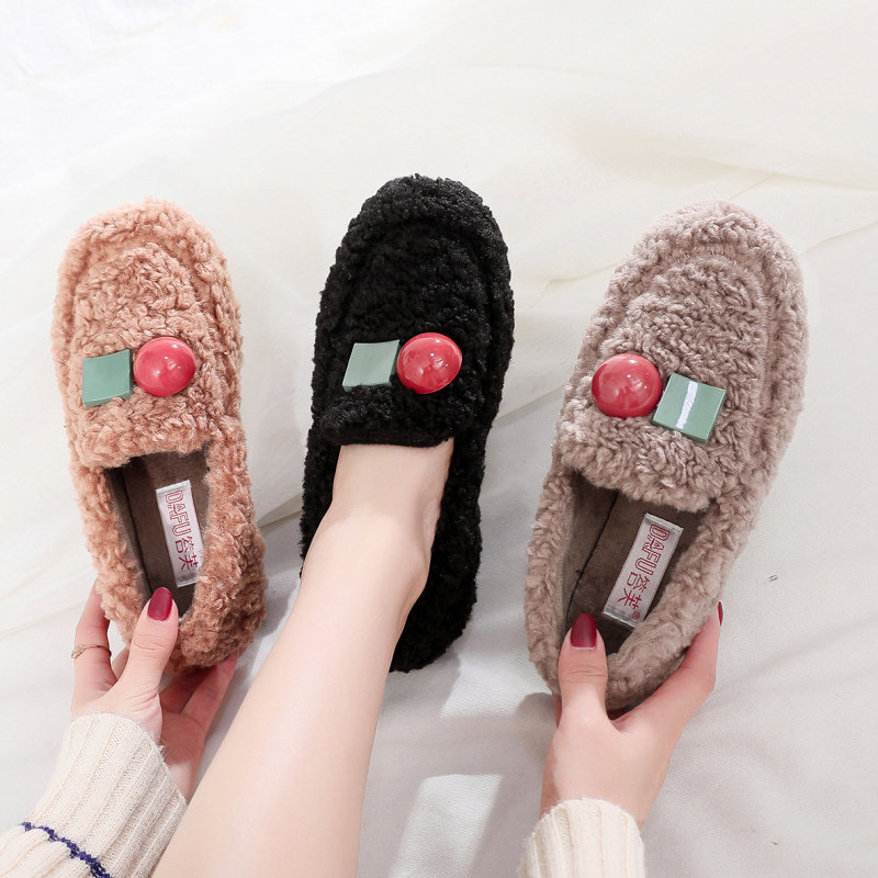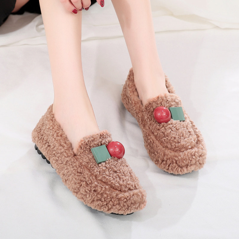 Korean version of autumn and winter plus velvet warm women's shoes Doudou flat shoes all-match lightweight cotton shoes outerwear fur shoes fashion casual
