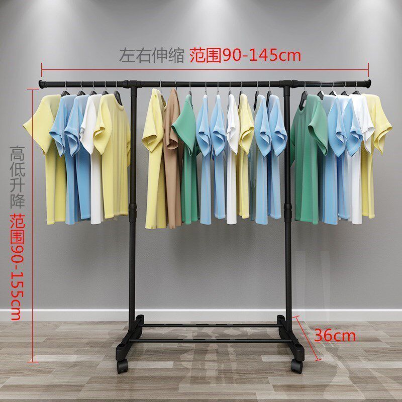 Strong drying rack drying clothes mini hook single rod Chinese household low slide hanging wardrobe floor indoor move