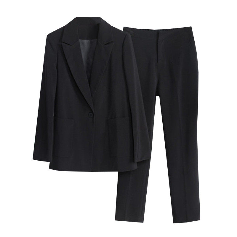 Suit suit women's spring clothes Korean version black loose casual 100 hitch fashion little sub Inron wind design feeling small crowd