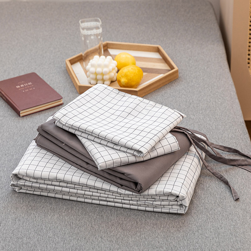 Nordic Plaid Bed bedding Four sets Japanese style sheet Quilt Cover Single Brief Student Dormitory 3 Three sets of pins