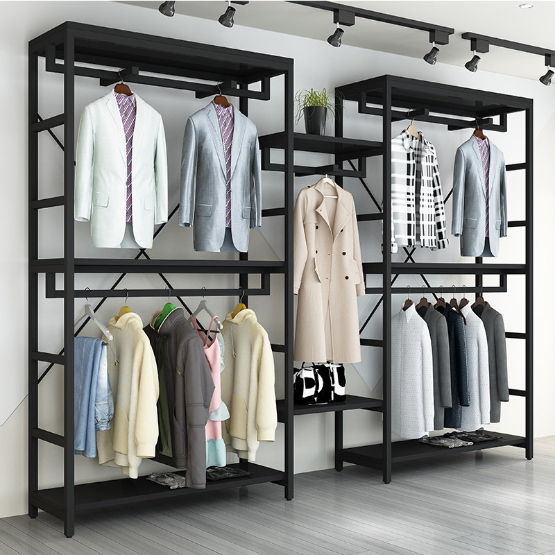Clothing store display floor-to-floor double-deck hanging rack children's clothing store display rack iron art