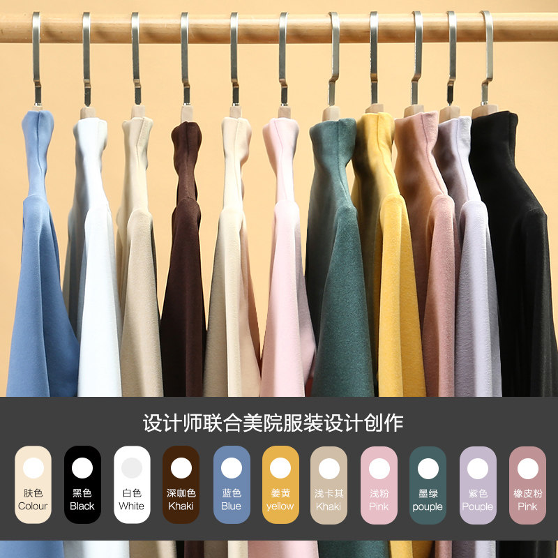 Autumn and winter De velvet semi-high collar base shirt female white plus velvet thickened inner wild top