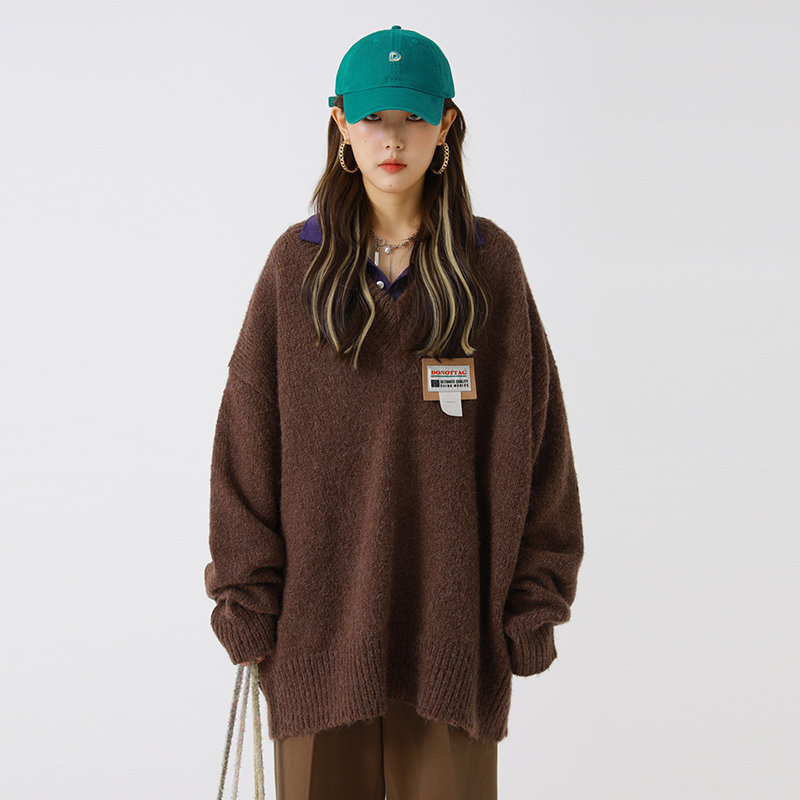 DNT Korean fire with alpaca wool ingredients hand feel Giojia V collar loose with lazy sleeve head sweater round the same