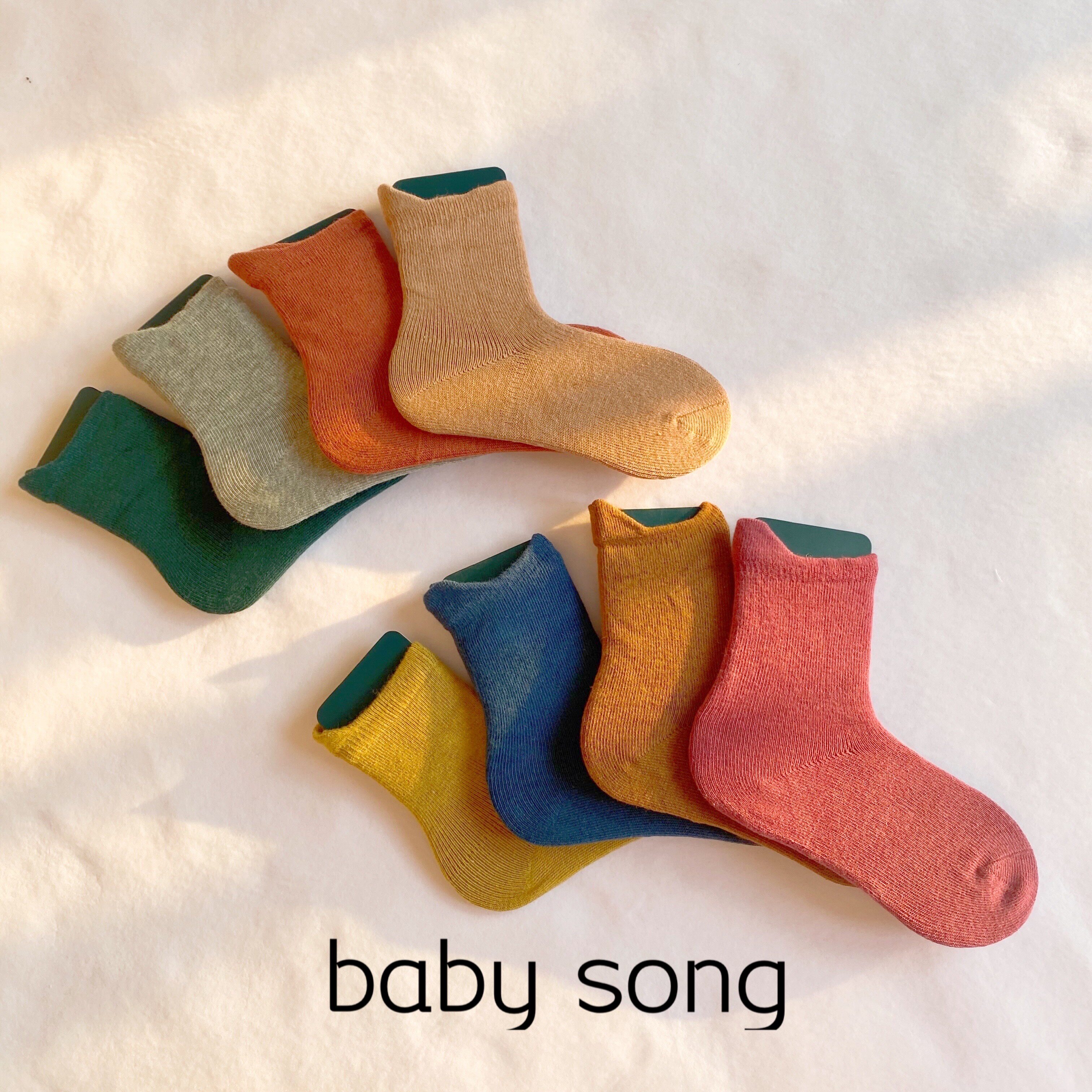 5 pairs of Korean single 1-12 year old boys and girls children's retro solid color combed cotton warm autumn and winter socks