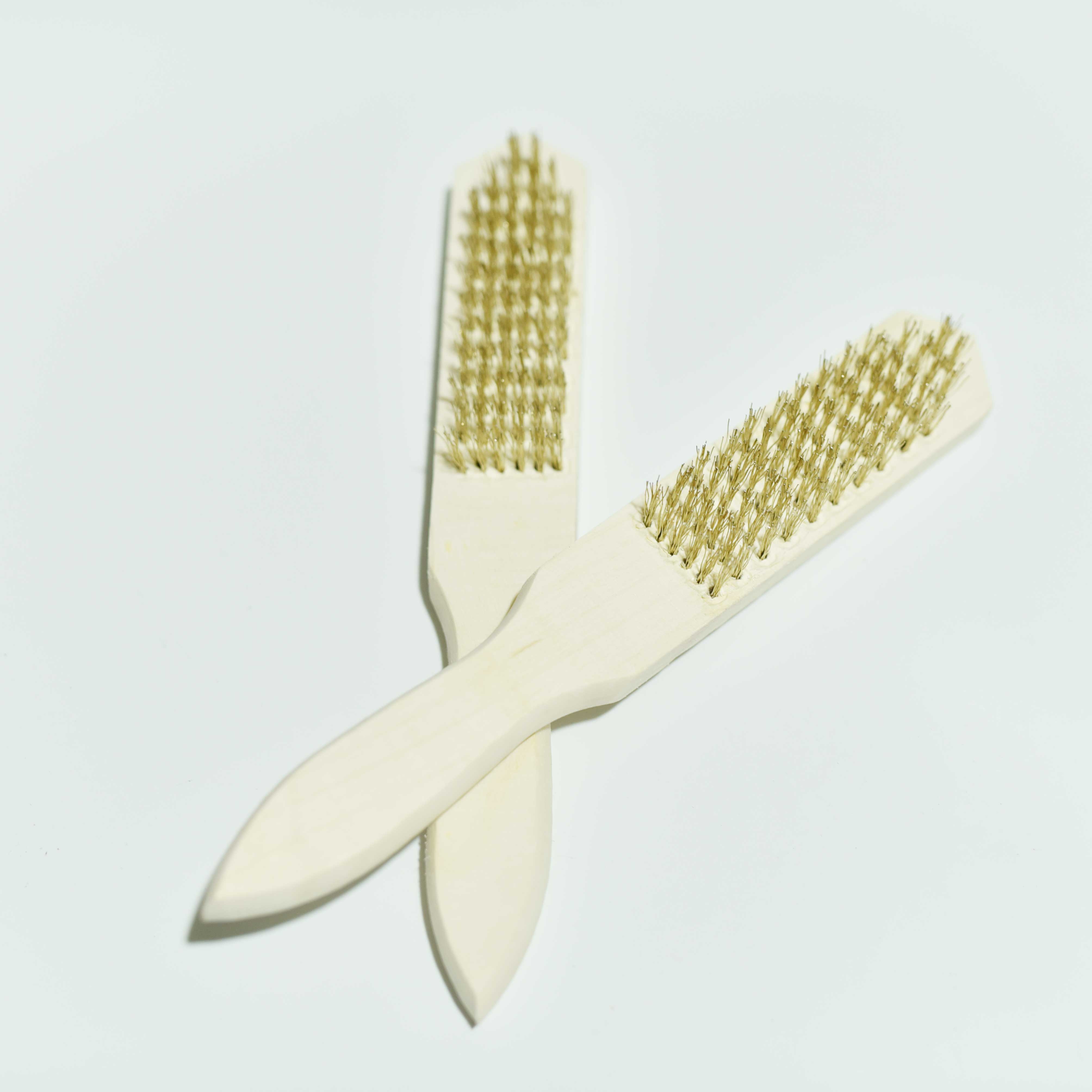 Wooden handle brass wire brush except paint rust brass wire brush metal surface cleaning brush Wen playing clean stainless steel brush