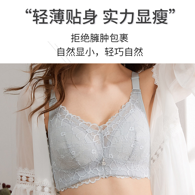South Pole lingerie woman without steel ring large chest display small and thin bra lace hollow light and thin breathable large size KMS