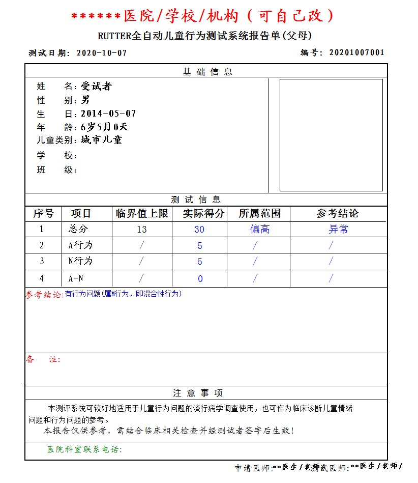 Rutter Children's Behavior Scale Parents Questionnaire Teacher Questionnaire Answer Generation Report Direct Print