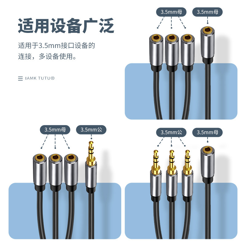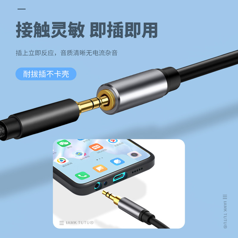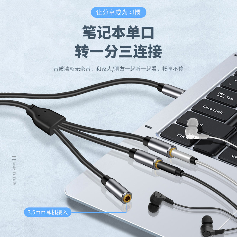 Applicable three-in-one headphone extension cord 10% Three-computer female head audio line male head at the same time The male 3 5mm female adapter couple three interfaces to convert the Apple notebook phone