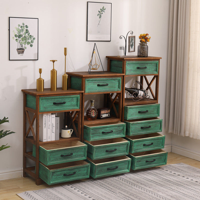 Bucket cabinet American solid wood locker bedside cabinet rack modern living room bedroom pastoral five-drawer small cabinet