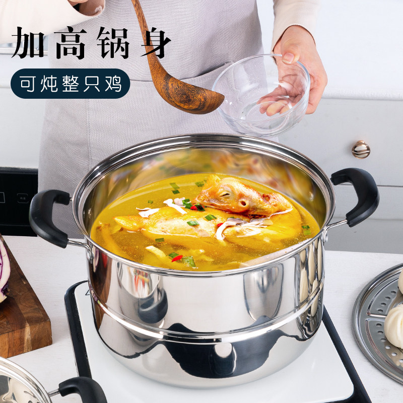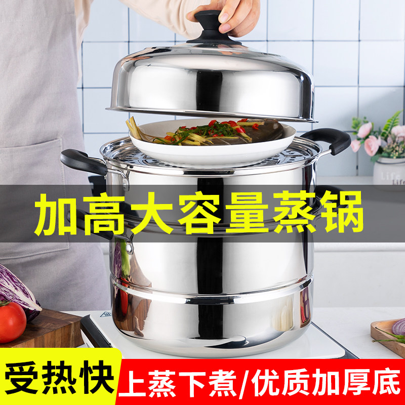 Stainless Steel Steamer Large Capacity Three Layers 3 Layers Steamed Steamed Buns Steam Coop Thickened Two-story Home Gas Cooker Electric Magnetic Furnace-Taobao