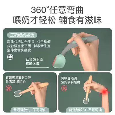 Newborn baby silicone spoon newborn breastfeeding spoon baby feeding soft spoon bending non-staple food spoon rice noodle rice noodle spoon