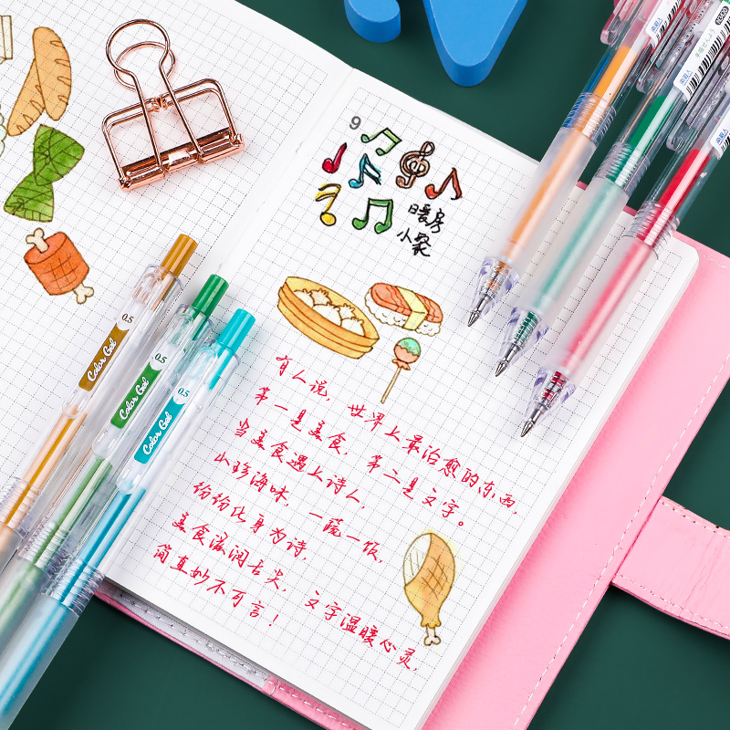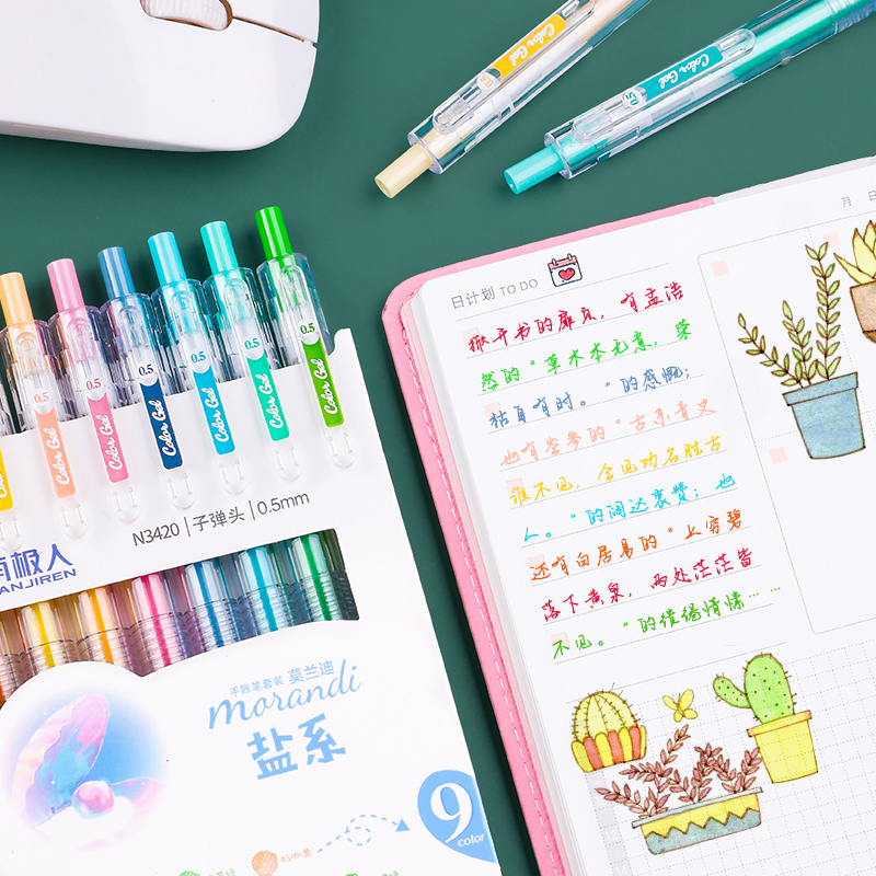 Color pen for taking notes Special push gel pen 0 5 Red pen Teacher special press water-based pen ins Japanese cold wind students with blue pen Retro hand account pen juice juice pen girls
