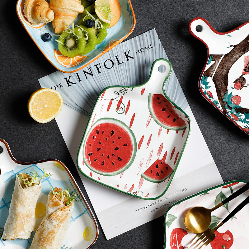 Ceramic Baking Tray Oven with cheese Oven Baked Rice Dish Home Breakfast with Plate Cute Mesh Red and Breeze Cutlery