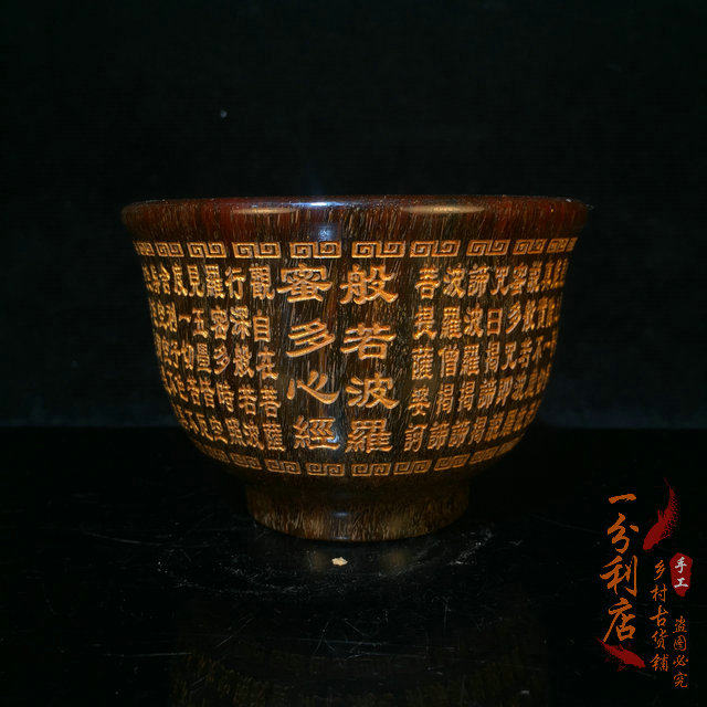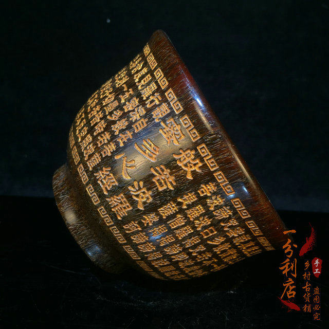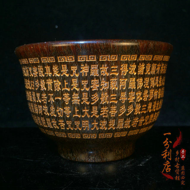 Antique collection old horns depicting gold Polomi Heart Sutra horn cup horn carving bowl home writing and play old goods collection ornaments