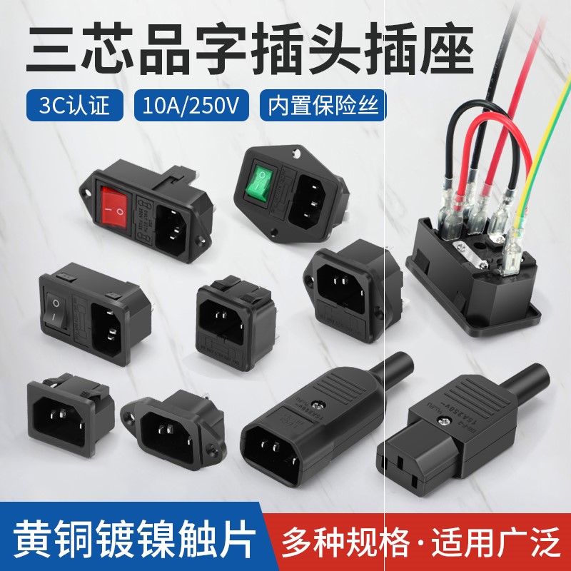 Electric rice cooker electric kettle computer host electric vehicle three-core power supply ac character socket plug male and female to connector