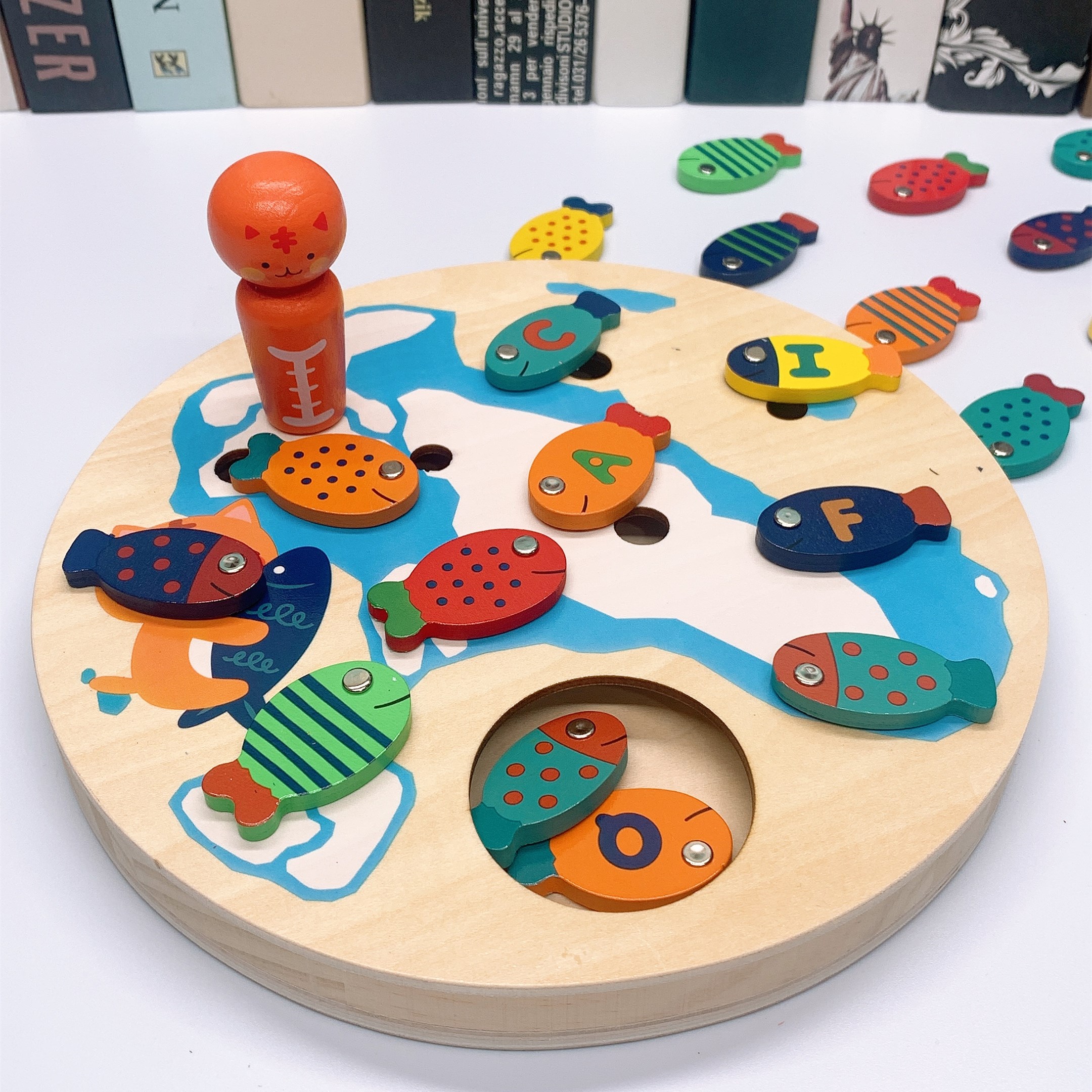 Infant Child Early Teach Kitten Fishing Toy Magnetic Fish 1-2-year-old half baby Puzzle Force Brain 3 Men Girls 4