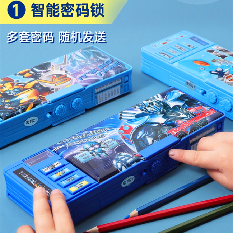 Transformers primary school students multi-function stationery box Children kindergarten pen box Large capacity simple pencil box Iron man boys trend personality high Yan value pen bag storage automatic creative net red