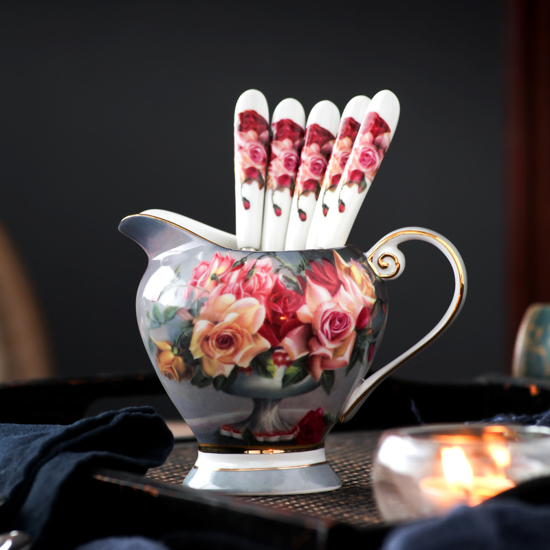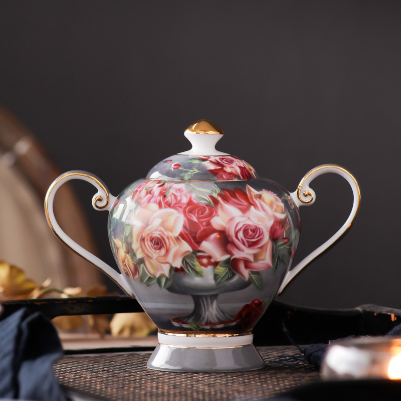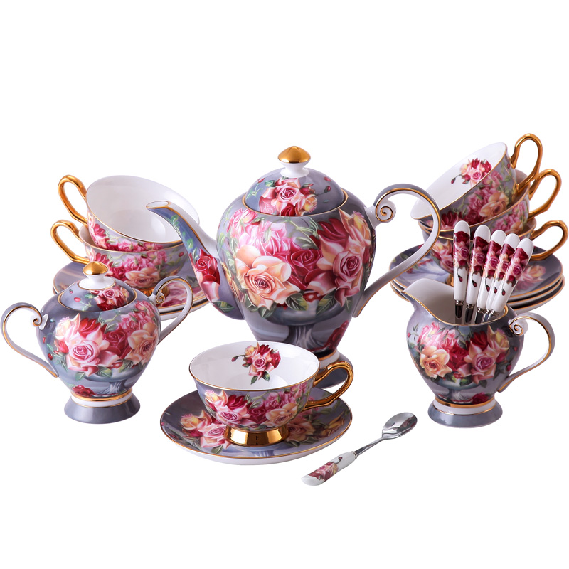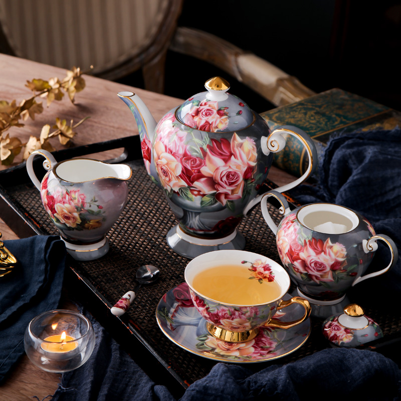 Rose European-style retro bone china afternoon tea tea set set home painted gold English coffee cup with flower tea cup luxury