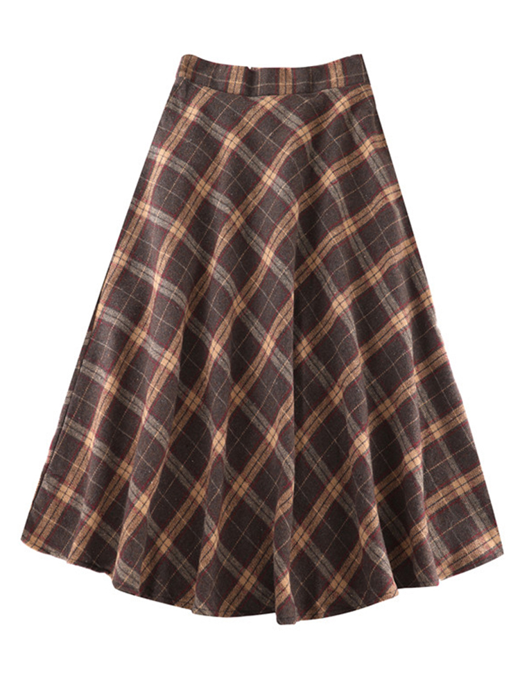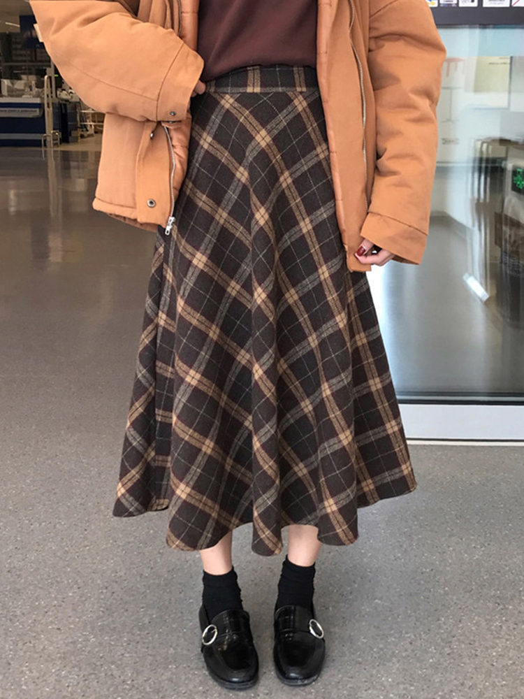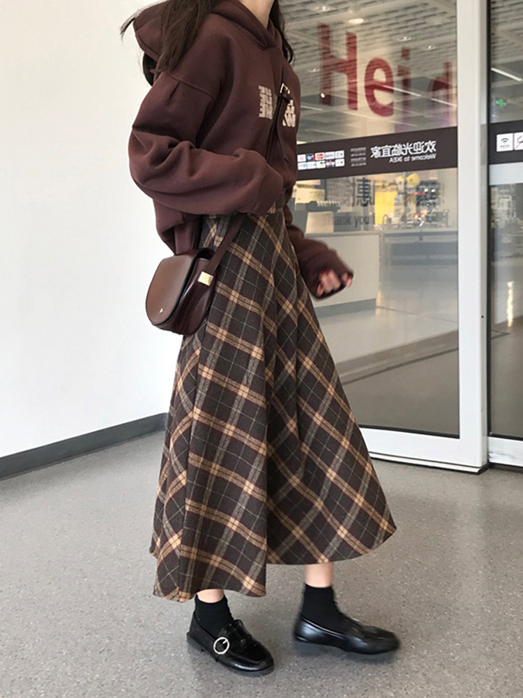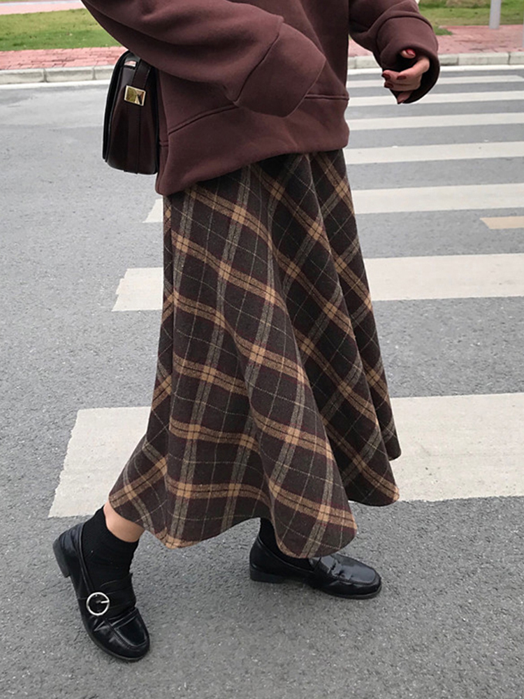 Suitable for fat to wear dresses spring autumn large size for half-body long dress with slim and high temperament high waist plaid pleated skirt