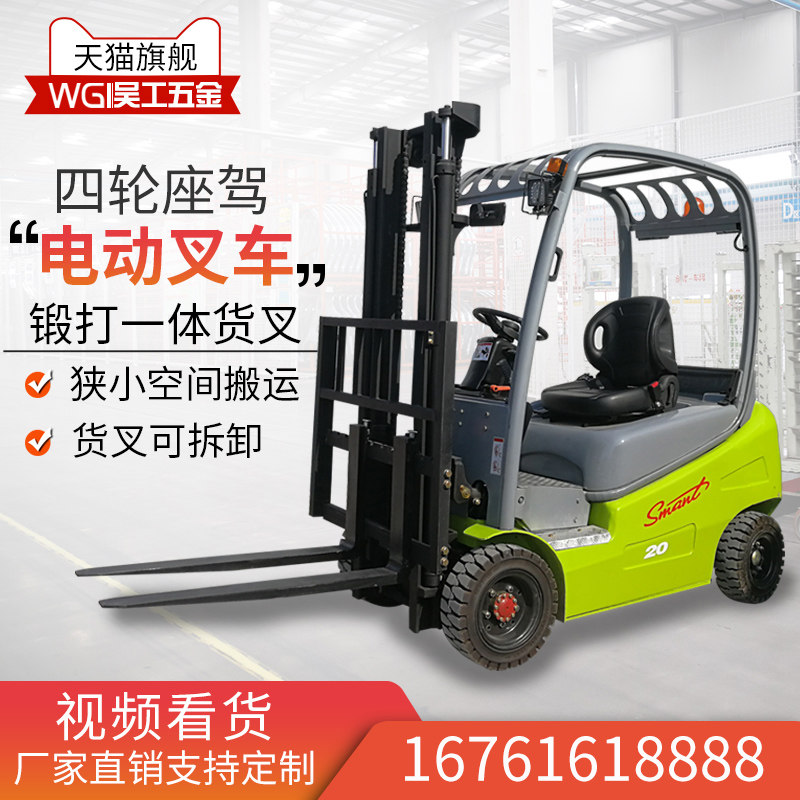 Environmentally friendly full electric pile high machine 1 5 ton seat driving type four-wheel pile high car 2 ton balance heavy battery raised loading and unloading pile high machine