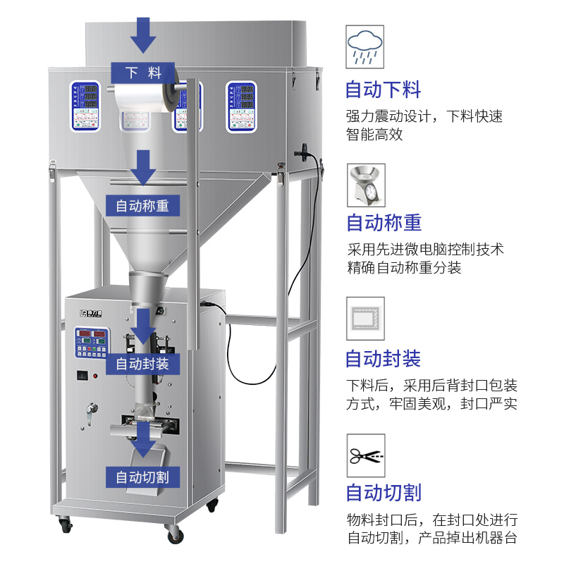 Fully automatic mixed packaging machine grain powder rice Wugu grocery grain commercial filling machine miscellaneous grain eight-treasure tea flower tea seasoning powder multi-head racking machine