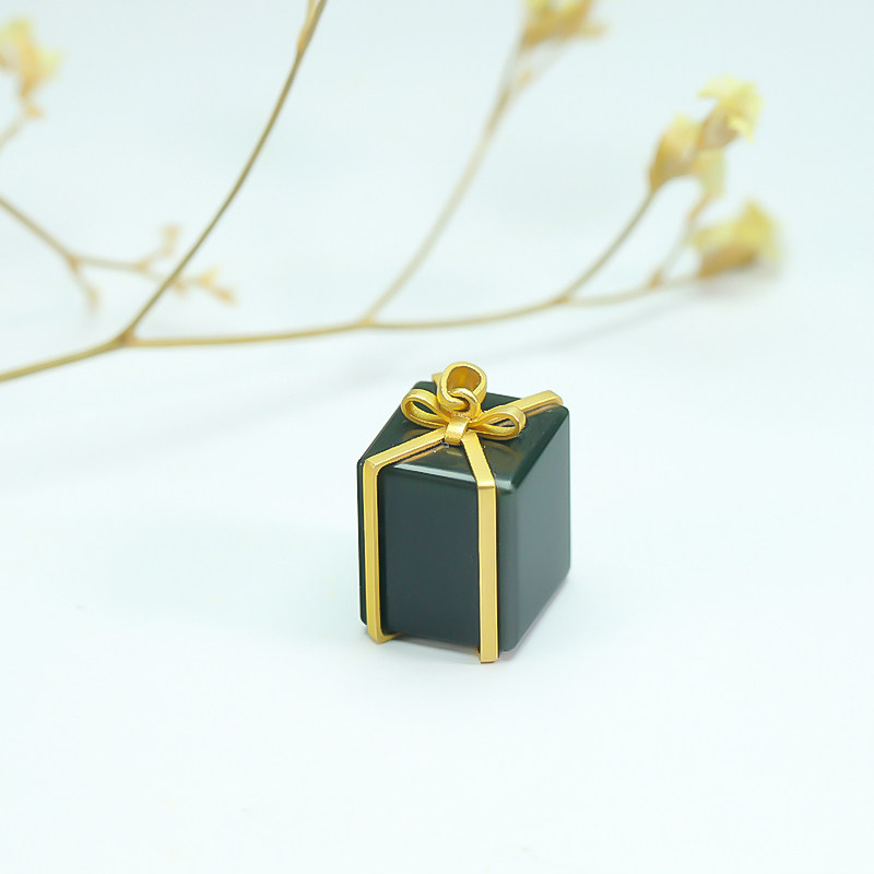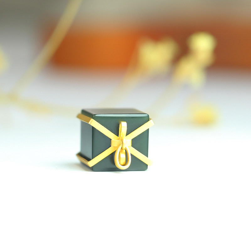 Huzige jewelry and Tianyu pendant Taqing first-class fine material 18K gold inlaid jade small gift bag original design