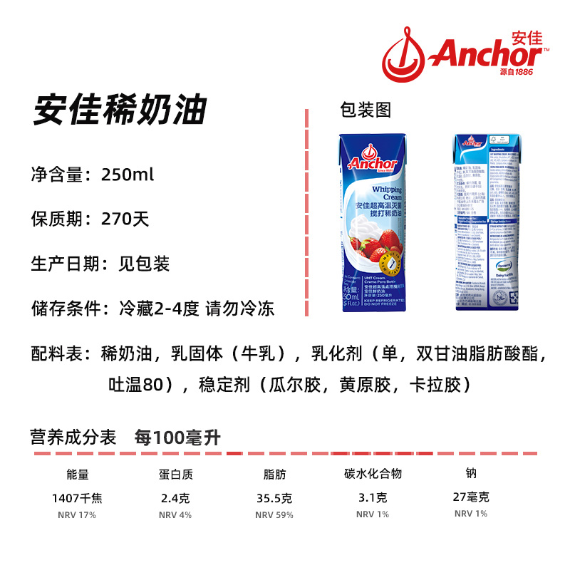 Antya Cream 250ml * 2 Baking Cake Egg Tarts Milk Cover New Zealand Animal Rare Cream Framed Home-Taobao