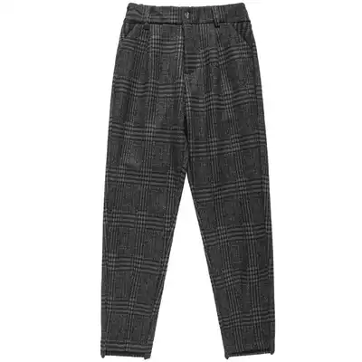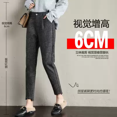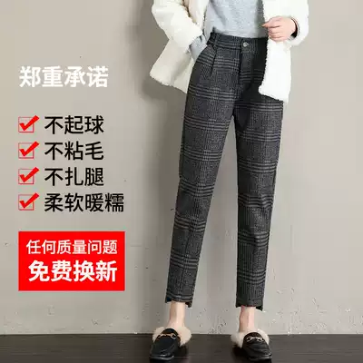Plaid woolen pants children autumn and winter 2020 New plus velvet thickened nine-point loose lob pants Harlan casual women's pants