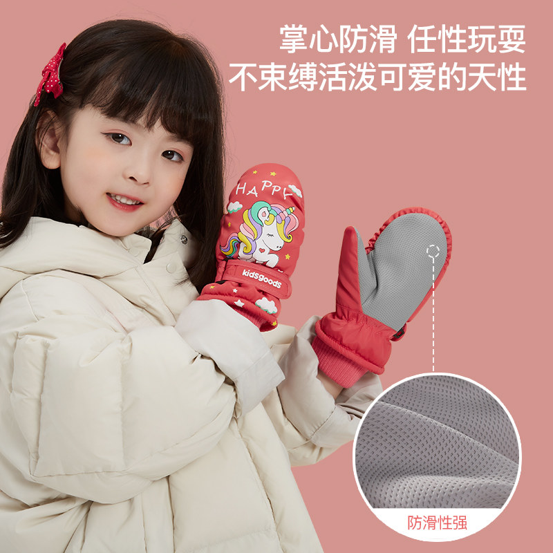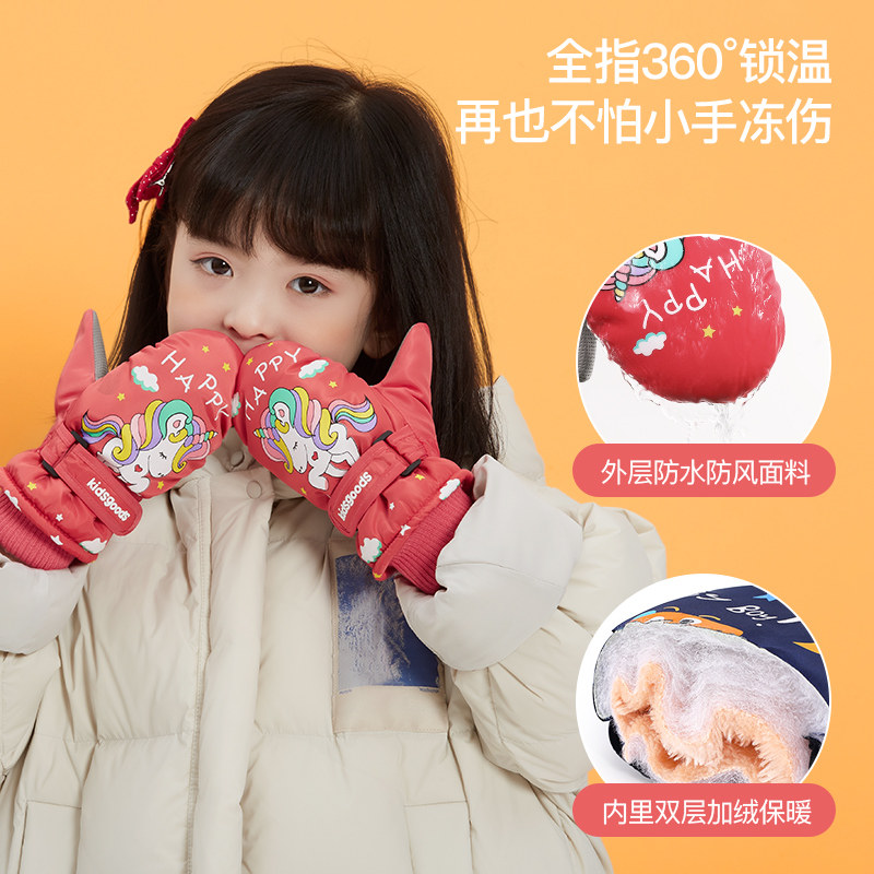 Children's ski gloves in winter warm plus velvet thickened cotton boys and girls baby kids waterproof non-slip play snow in winter