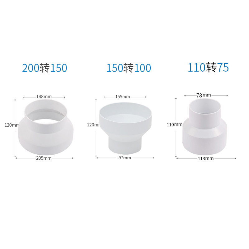 Pipe ventilator adapter PVC pipe size change head 200-150 150-100 110-75 conversion joint