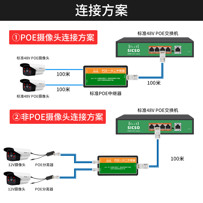 Blue Shield Heiconpoe 10% II Internet Line Extension Line Standard 48V Extender Surveillance Photographic Lens Special 10% 2 Switch Internet repeaters