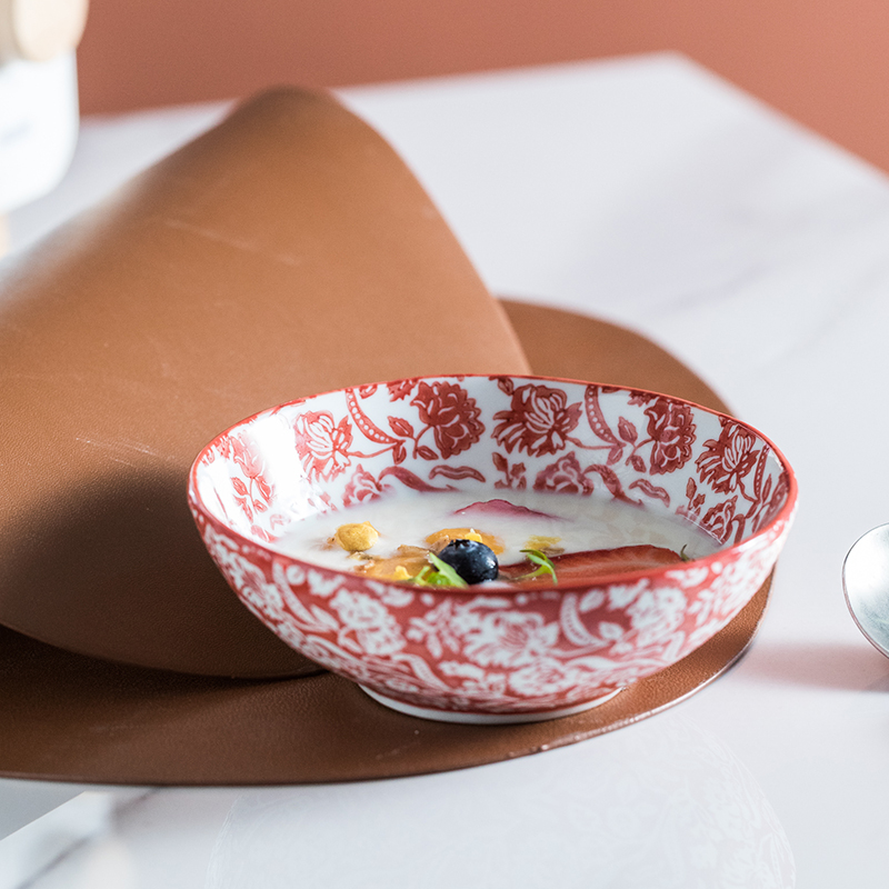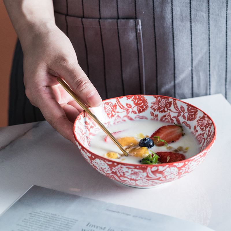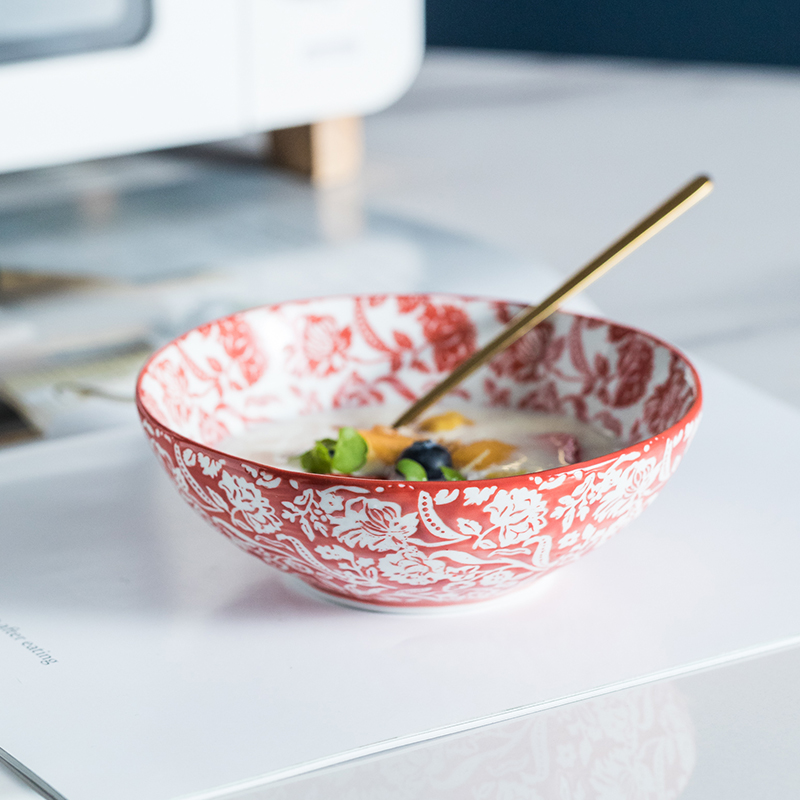 Day Style Art Fresher Reliefs Ceramic Bowl Salad Bowl Retro Home Rice Bowl Taste Add Soup Bowl Breakfast Dessert Bowl