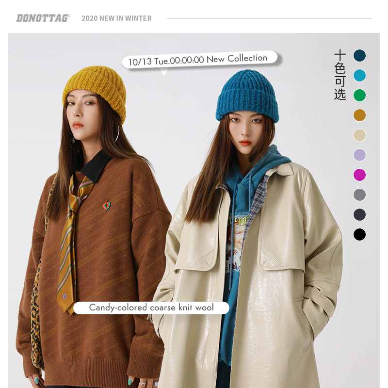 DNT Han Fire Winter Day's Dot's Pen Candy Color Rough Knit Wool line hat with 32% wool