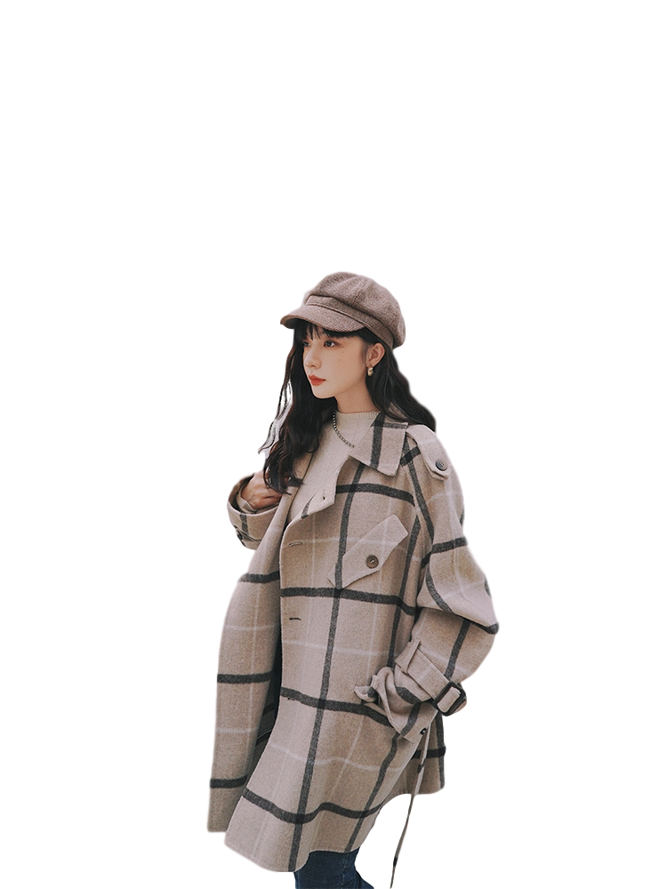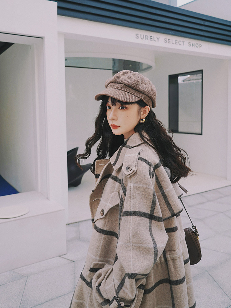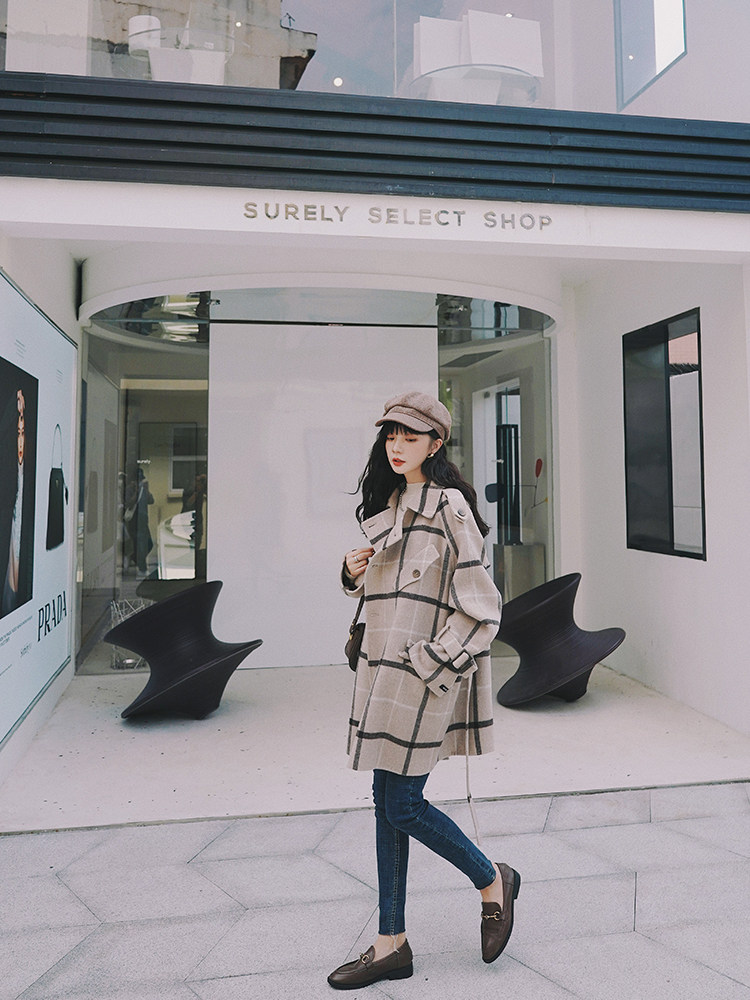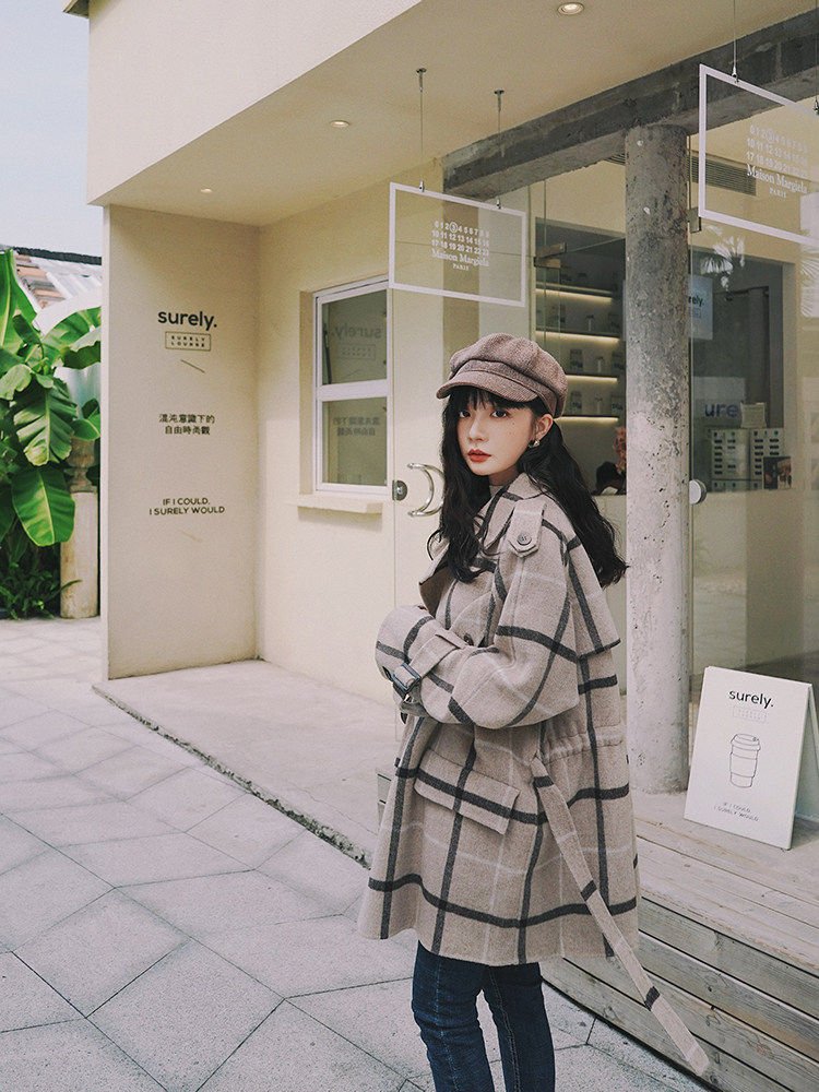 Lecea Alice woolen coat women's 2022 winter new Korean version all-match plaid temperament mid-length coat