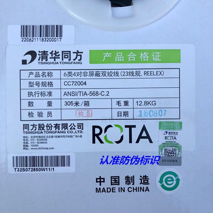 Original dress Tsinghua Tongfang CC72004 Type of cable Four pairs of non-shielded twisted pair CAT6 one thousand trillion mesh routes
