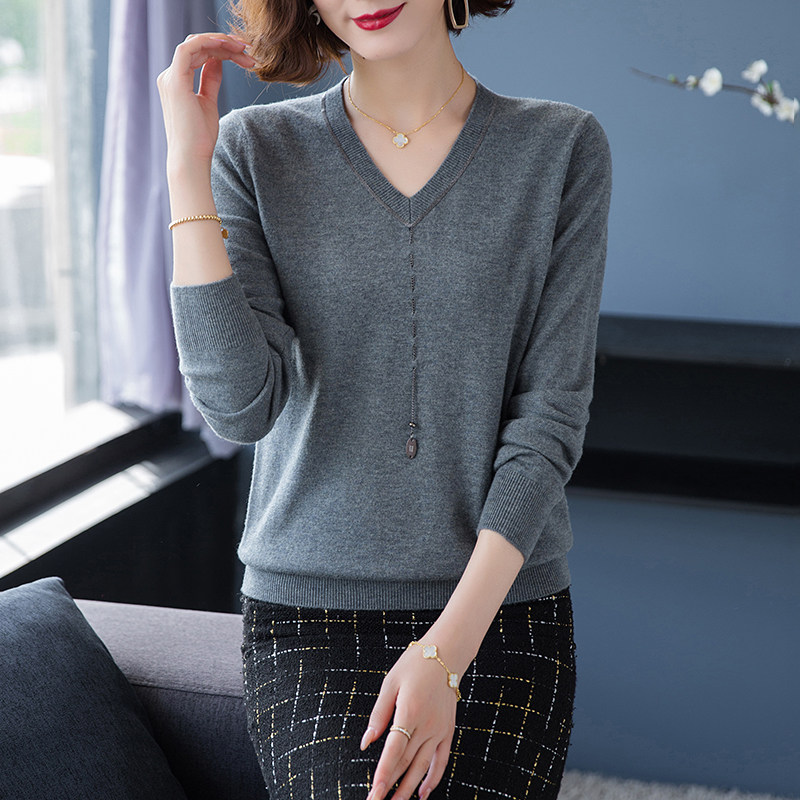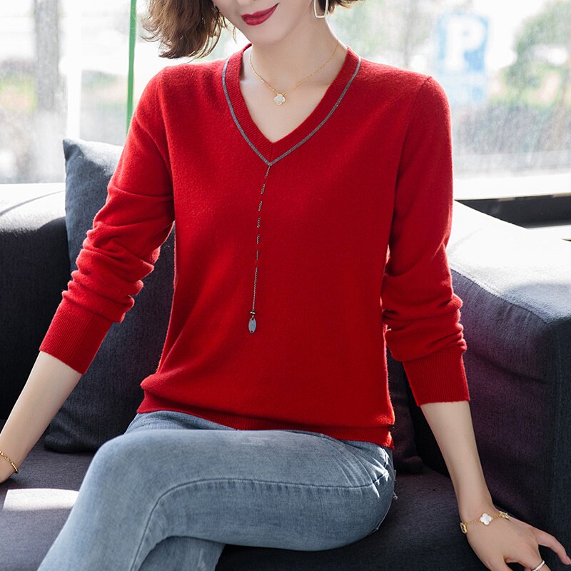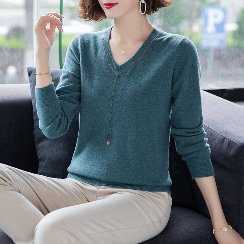 Diitududun sweater women wear 2021 autumn clothing new V collar big size women's clothing middle-aged moms minus their age to hit undershirts