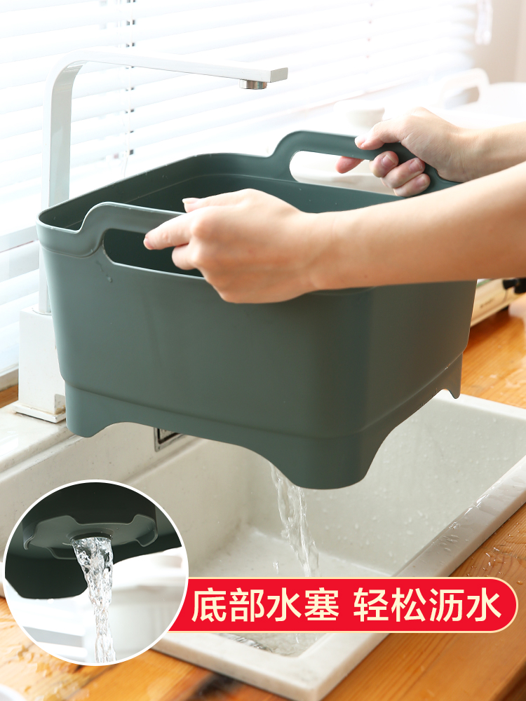 Vegetable washing basin Leaching basket Kitchen large number of dishwashing draining basin Water filtration basket Plastic mobile sink Drainage Wash Vegetable Basket