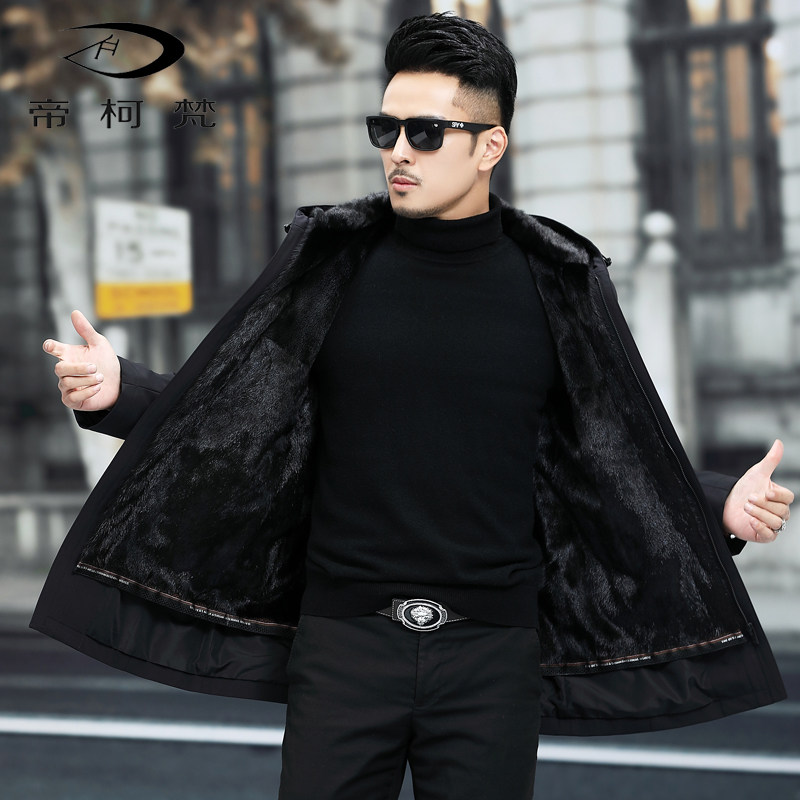 Nyi overcomes the long version of the mink liner in the men's mink and overcomes the fur coat in the winter jacket of the mink fur coat
