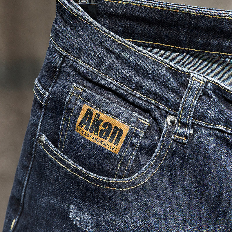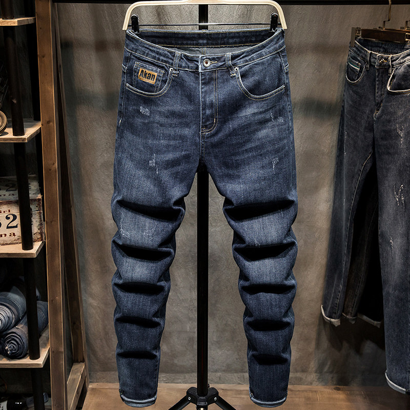 Autumn Winter Style Jeans Men's Body Small Feet 100 Hitch Pants Male Korean Version Trendy Tide Card Printed Elastic Men Long Pants