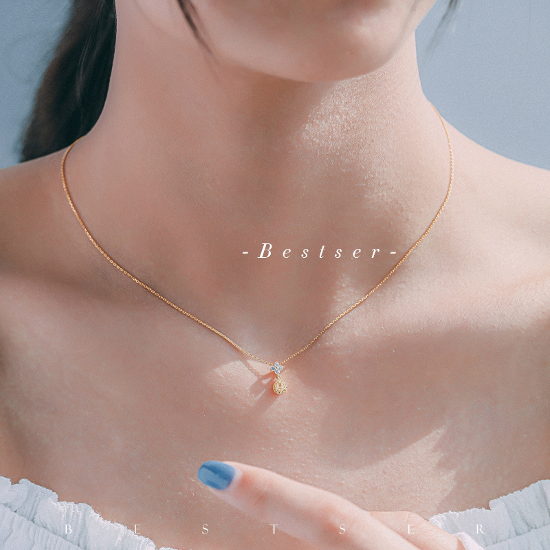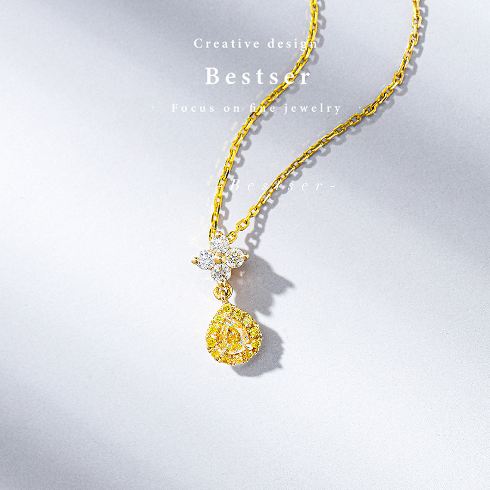 Bise Bestser (Autumn Firefly) 18K Gold Color Gemstone Yellow Diamond Pendant Clavicle Necklace Girlfriend Gift