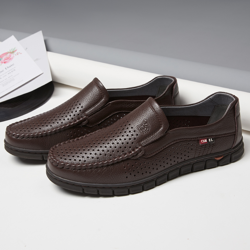 Camel Men's Shoes 2021 Summer Breathable Dad Shoes Business Positive Clothing Middle-aged Leather Shoes Men's Hollowed-out Casual Thin Leather Shoes-Taobao