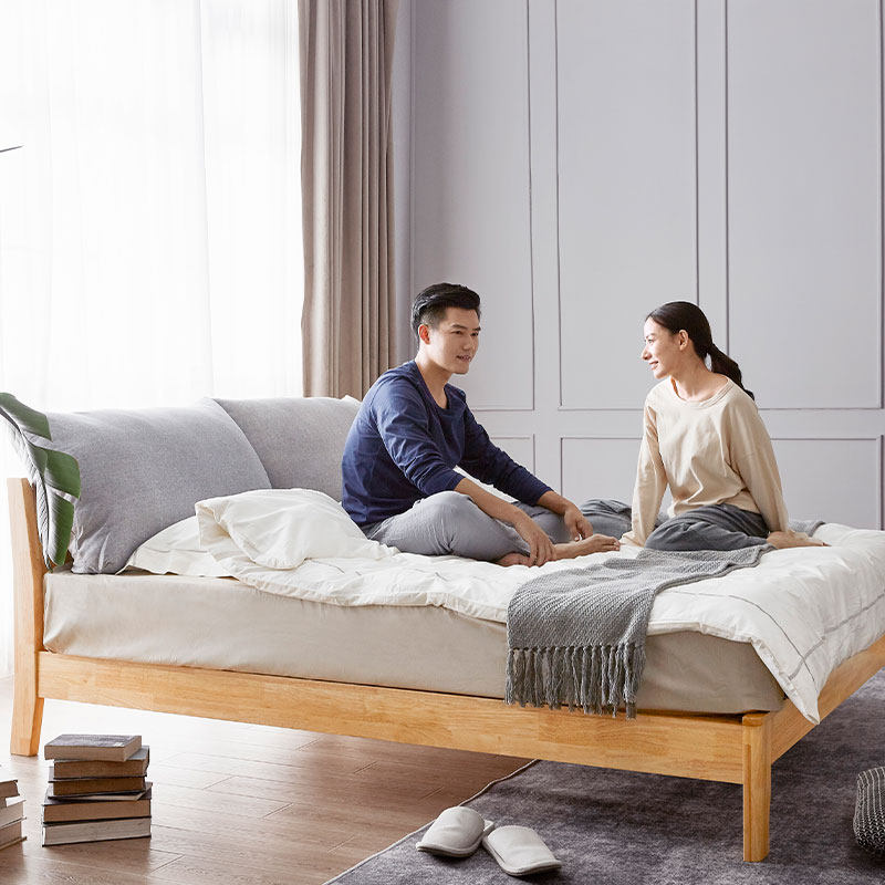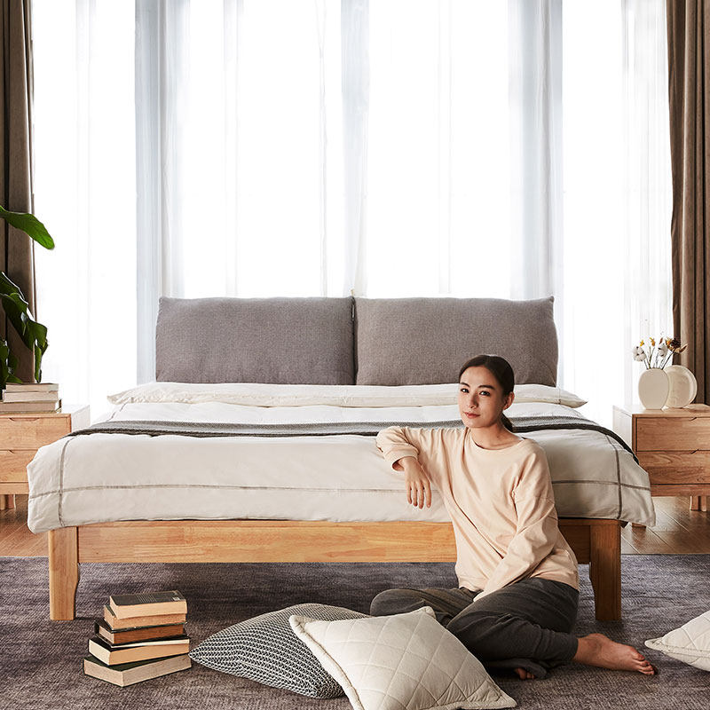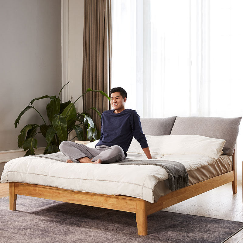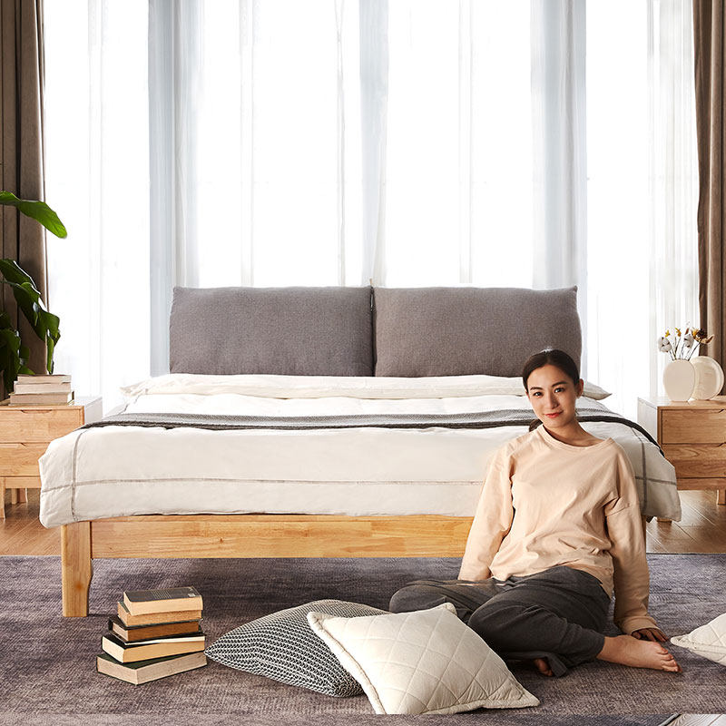 Red Star Macalline self-operated totoro Xiansensen breath solid wood simple bed 1 .8m double bed bedroom soft wrapped bed