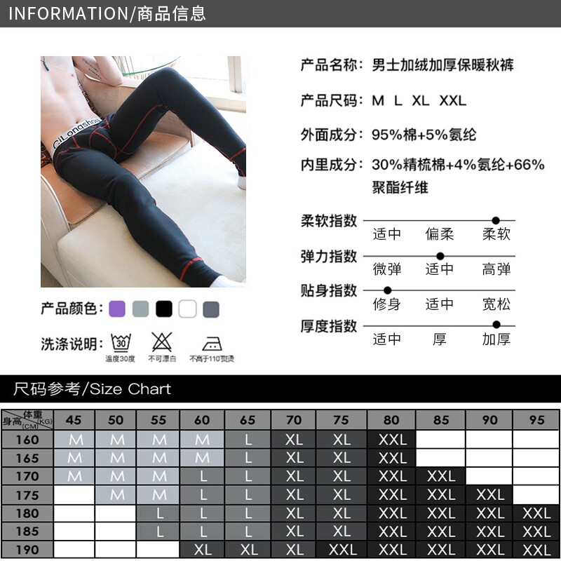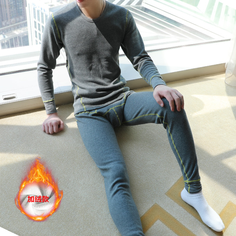 Men's warm underwear suit thickened plus cotton youth sexy anti-cold wave pure color autumn pants men