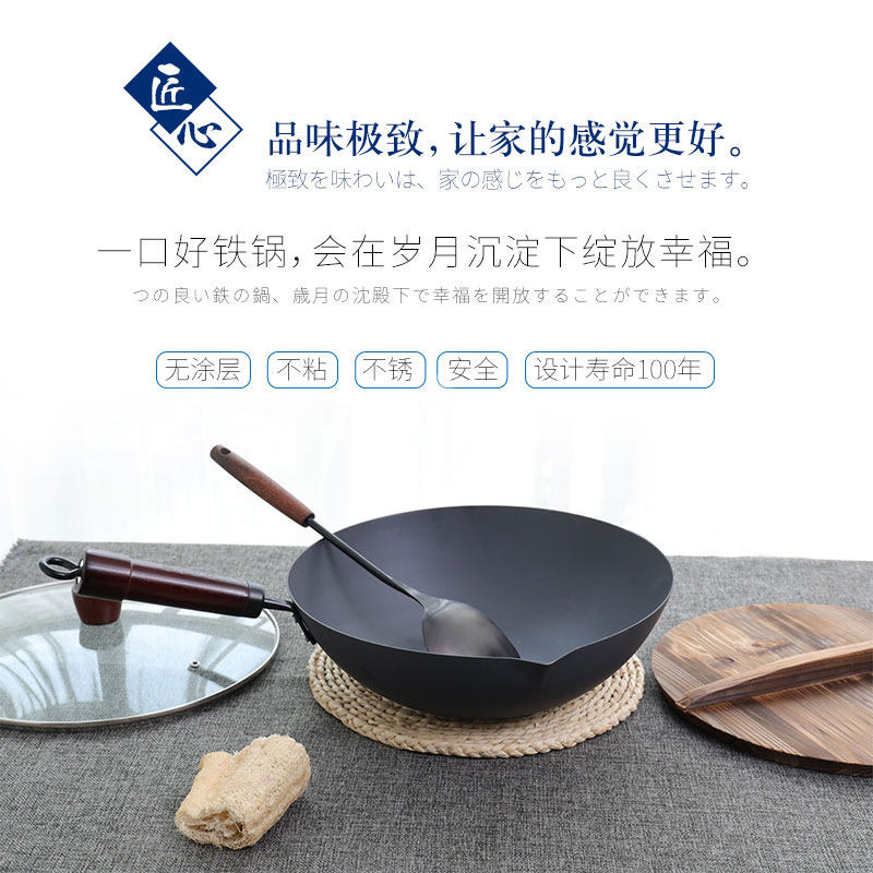 Elephant Benji Flat Bottom Iron Pan Home Imported Extreme Iron Process No Coating Saute 30cm Gas Oven Gas Cooker applicable