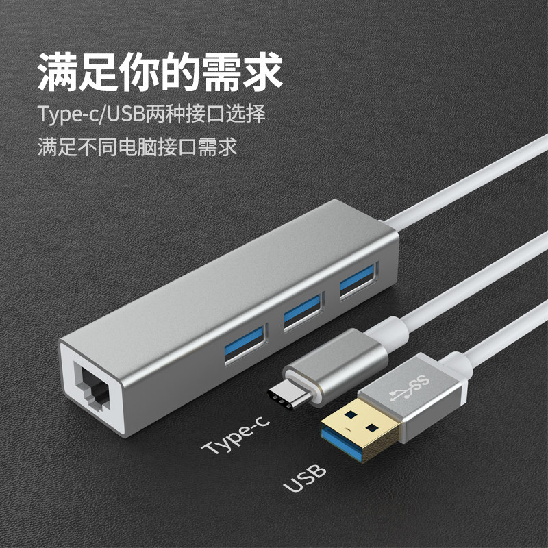 (Apple Silver)Four-in-one (TYPE-C to 100M network port 3 USB3 0)Plug and play