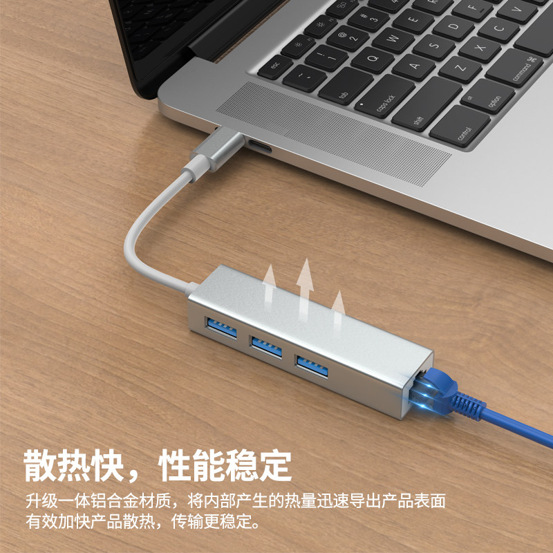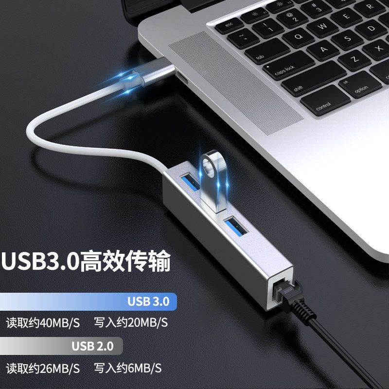 (Apple Silver)Four-in-one (USB3 0 to 100M network port 3 USB3 0)Plug and play