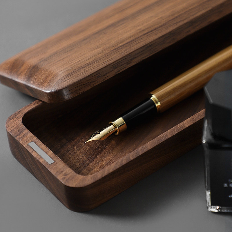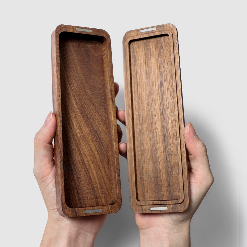 Wooden Japan-style pen box containing box solid wood minimalist lead pencil case gift black walnut wood retro business pencil case