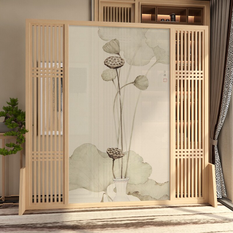 New Chinese style screen partition living room entrance Simple modern solid wood mobile bedroom block home seat screen