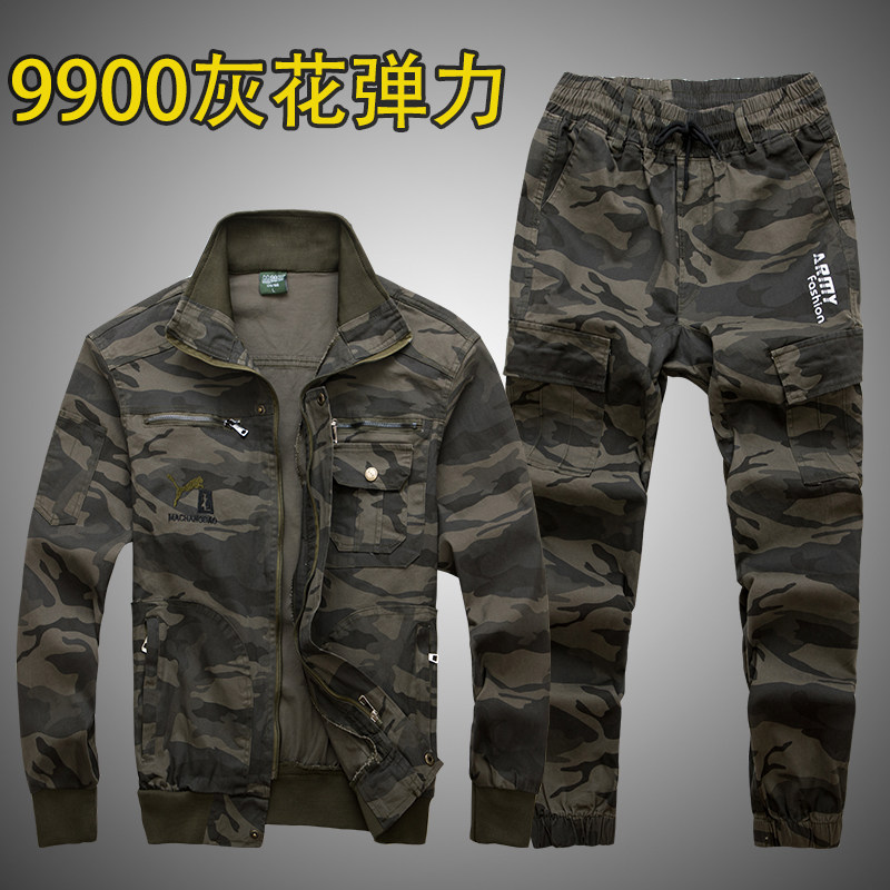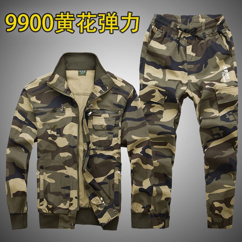 Elastic camouflage suit men's spring and autumn cotton overalls wear-resistant labor protection clothing electric welding auto repair casual overalls